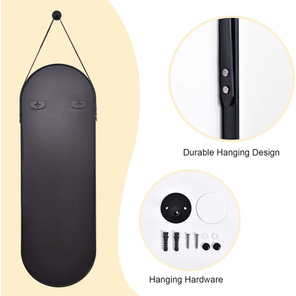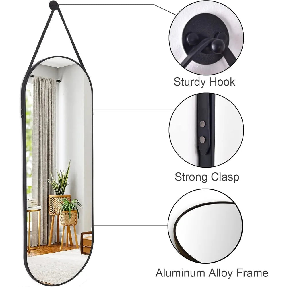 This 16"x48" oval hanging wall mirror with a bold black frame adds modern sophistication to your home. Perfect for hallways, bathrooms, or bedrooms, its elongated design creates a chic and functional statement, blending seamlessly with contemporary or minimalist interiors.