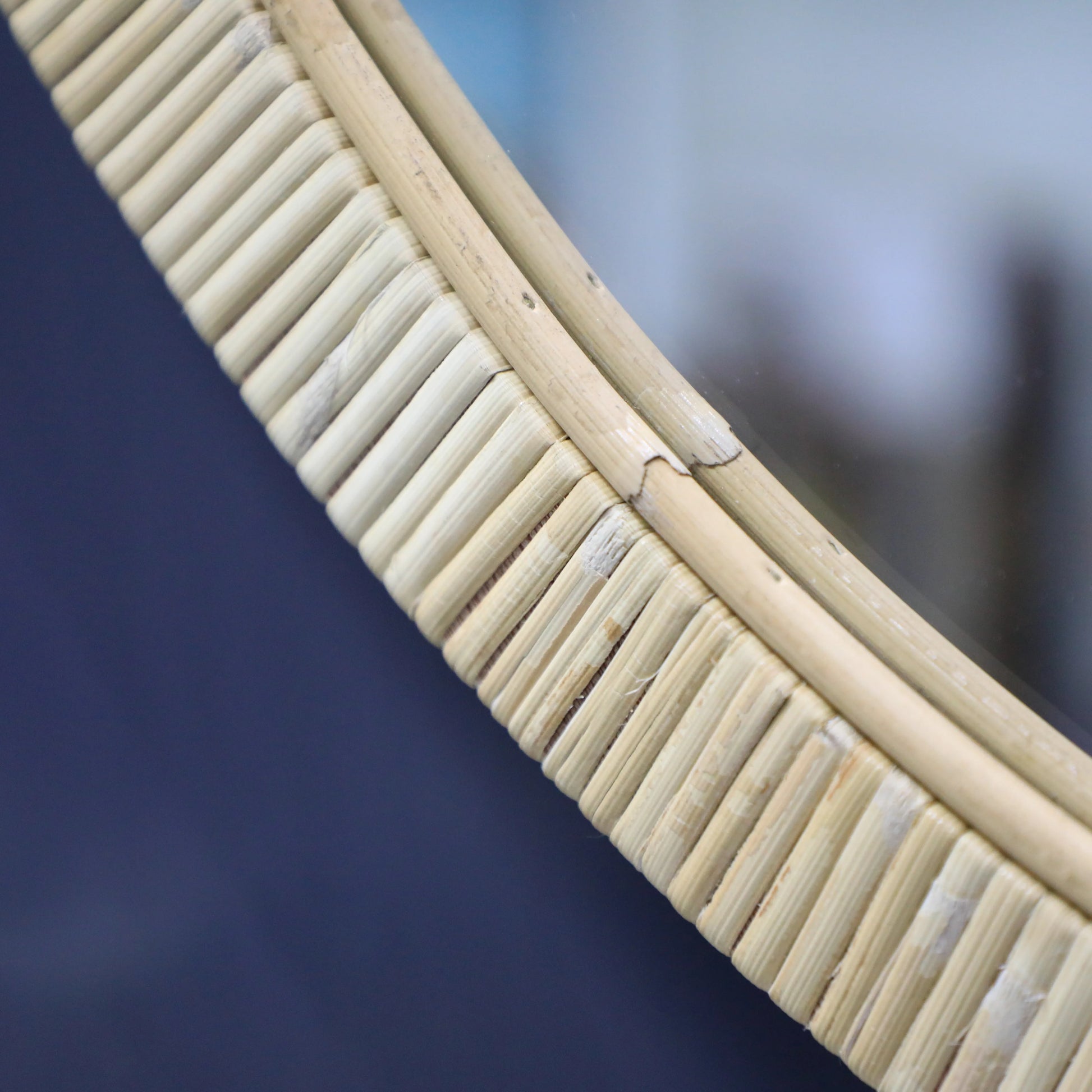 Bring a boho touch to your decor with this round rattan wall mirror. Crafted with natural rattan, this mirror adds texture and warmth, making it an ideal accent for living rooms, bedrooms, or entryways. It enhances spaces with a cozy, organic feel and stylish charm.